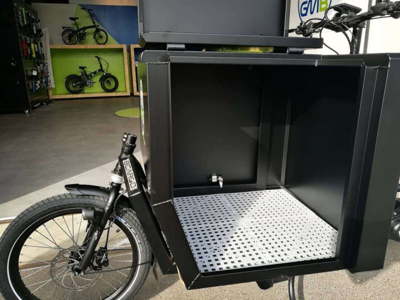 Il migliore amico dei ciclocorrieri: il cassone in alluminio da 240 litri, totalmente impermeabile e con chiusura di sicurezza, offre una capacità di carico pari a quella di un’utilitaria, per trasportare in sicurezza anche la merce più delicata al riparo dagli agenti atmosferici.